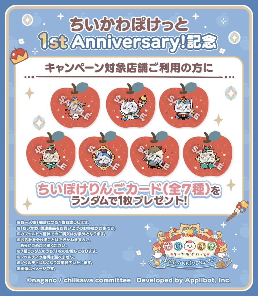 株式会社アプリボット(本社:東京都渋谷区、代表取締役社長:浮田光樹)が企画・制作・開発・運営を行う、「ちいかわ」初のスマホアプリ『ちいかわぽけっと』(以下、『ちいぽけ』)は、皆様のおかげで1周年を迎えます。これを記念して、2026年3月19日(木)より特設サイトと記念動画を公開いたしました。また、1周年を記念したポップアップイベントの開催に加え、「白雪姫イベント」の実施とそれに伴う新衣装を公開します。さらに『ちいぽけ』公式Xにて、1周年を記念したキャンペーンも実施いたします。